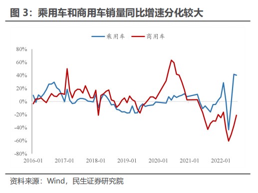 我們預計商用車銷量增速仍然保持低位,汽車類零售額的增速可能與汽車銷量增速維持較大差距,因此無需過度擔憂社零數據對汽車行業景氣度的指示意義。
