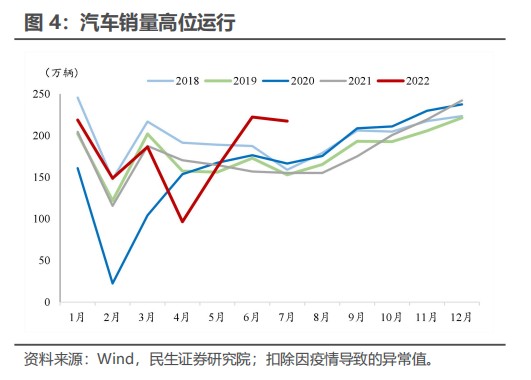 7 月乘用車銷量高速增長,受益於購置税政策變化、拍牌額度增加等利好因素;商用車銷量下滑明顯,主因在於地產開工疲軟,投資活躍度低迷。