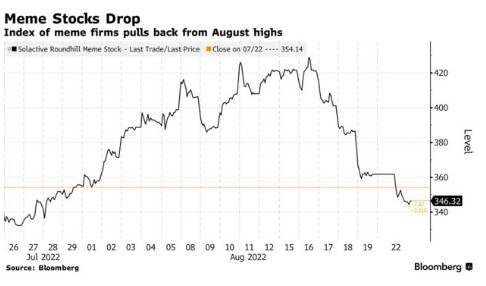 3B 家居 (BBBY.US) 股價下跌 16%,此前有報道稱,一些供應商在該公司拖欠貨款後,開始限制或停止發貨。這種悲觀情緒也波及了其他 meme 股,其中 GameStop(GME.US) 於本週一下跌 5.5%,AMC 院線 (AMC.US) 下跌 6.4%。