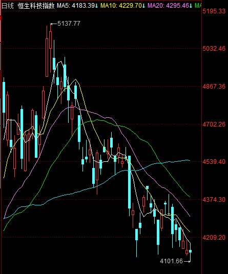 算上今日,恒生科技指數已經連續五個交易日下跌,追平了其 5 月 10 日以來的最長連跌勢頭。
