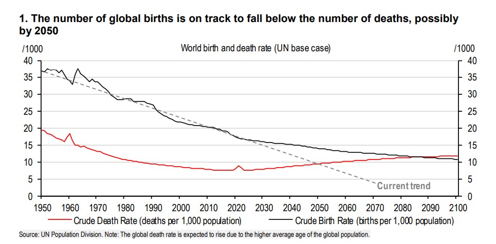 聯合國預計,全球人口出生率和死亡率將在 2086 年相交。