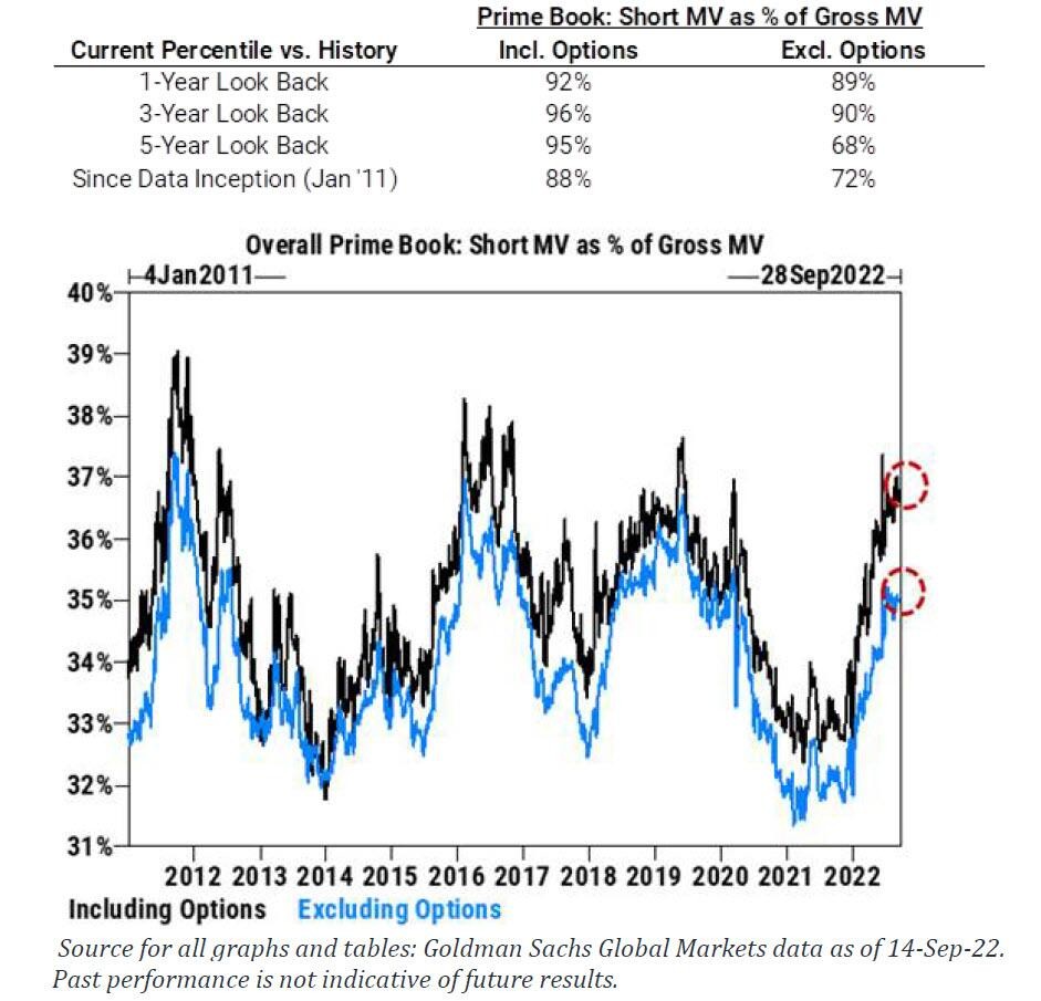 具體來説,如果考慮期權的影響,當前的空頭水平是過去一年最高水平的 92%,達到過去三年最高水平的 96%,過去五年最高水平的 95%,並且是自高盛 2011 年 1 月開始追蹤該數據以來最高水平的 88%。