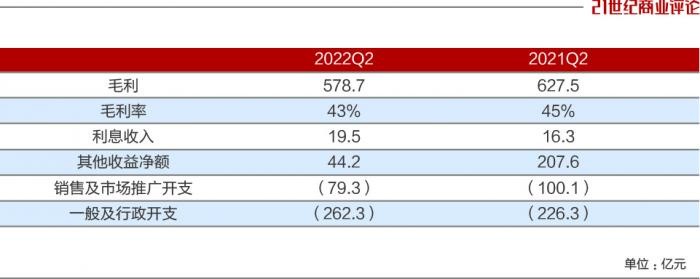 大手筆投資也有副作用。2022 年第二季度,投資成為拖累騰訊淨利潤的原因之一。財報中,“其他收益淨額” 較去年同期減少 163.4 億元。