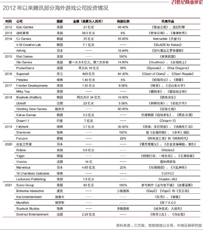 據中信證券研究報告,自 2012 年以來,騰訊至少耗費 978.67 億元,投資了 33 家海外遊戲公司,包括開發《英雄聯盟》的拳頭公司、開發《皇室戰爭》的 Supercell。考慮到樣本遺漏,其整體投資當在千億之巨。