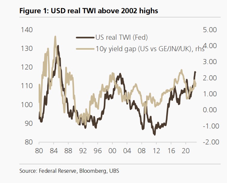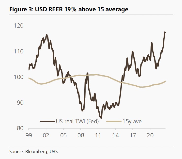 瑞银认为,很显然美元并不便宜,但从历史水平来看,究竟高到什么程度还有待衡量。