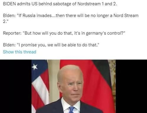 10.拜登在俄烏衝突開始前堅定説過,如果俄羅斯與烏克蘭開戰,那麼將不會再有北溪二號。當時有記者問道,它在德國控制下,美國如何做到這點?拜登回答:“我保證,我們能做到這點!”