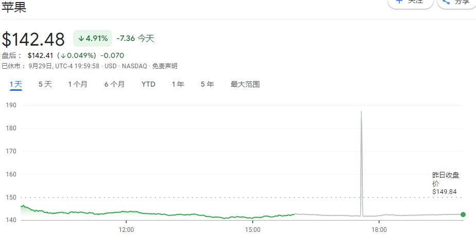 蘋果股價大幅下跌,截止週四收盤,下跌 4.91% 至 7 月 5 日以來低位。今年迄今,蘋果累計跌超 20%,納指同期跌幅為 31%。