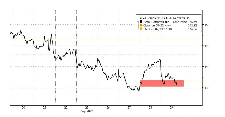消息傳出後,Meta 股價盤中一度跌 4%,最終收跌 3.67%。此外,微軟收跌 1.5% 至為 52 周低點;谷歌母公司 Alphabet 也創 52 周來新低,下跌 2.6%;亞馬遜下跌 2.7%,特斯拉下跌 6.8%。