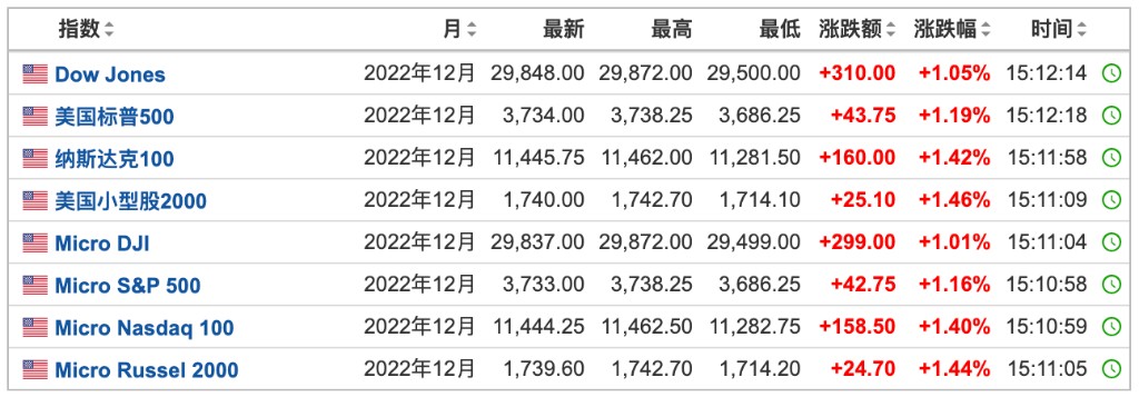 美股期貨擴大漲幅。納指期貨上漲 1.6%,道指期貨漲超 1%,標普 500 指數期貨漲 1.19%。