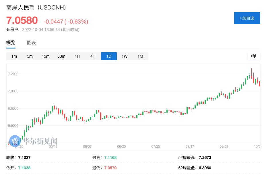 華爾街見聞此前提及,10 月 4 日,受外圍情緒影響,亞洲市場整體開漲,午後離岸人民幣大漲。