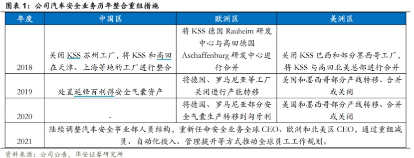 整合 KSS 和高田資產,使得公司已成為全球第二大汽車安全供應商,產品包括安全氣囊、安全帶、方向盤;