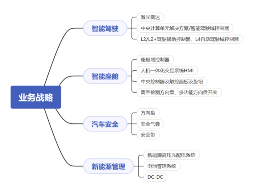 在發展方向上,公司以智能駕駛、智能座艙、汽車安全和新能源管理為方向。