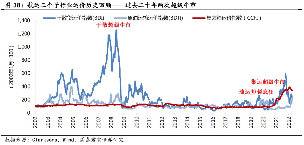 過去二十年,航運市場共出現過兩次令人影響深刻的 “超級牛市”,一次是 2007 年-08 年的幹散貨超級牛市,另一次則是 2020 年至今的集運超級牛市。