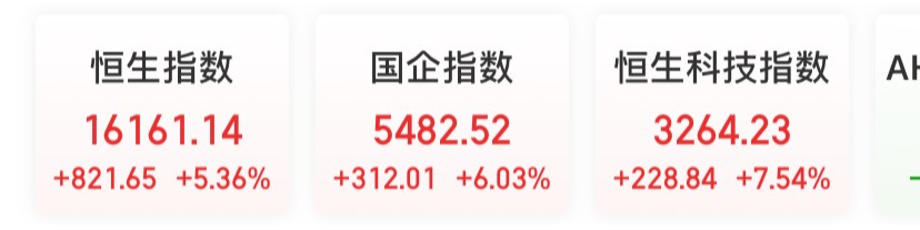 11 月 4 日,港股迎來本週的第二大奇蹟日!繼 11 月 1 日大漲之後,今日香港恒生指數收漲 5.36%,本週累漲 8.73%,創 2011 年 10 月底以來最大單週漲幅;恒生科技指數漲 7.54%,本週累漲 15.63%,創有記錄以來最大單週漲幅。
