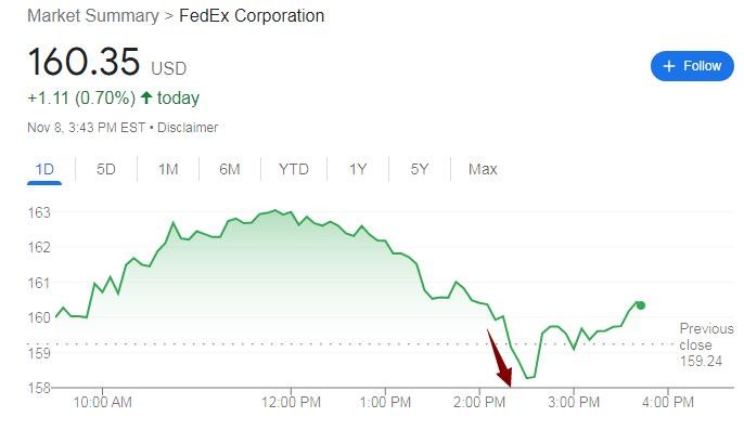 在上述下調地面配送預期的消息傳出三週前,聯邦快遞公佈的業績暴雷。