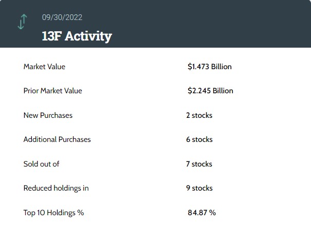 最新數據顯示,景林資產第三季度持倉總市值為 14.73 億美元,上一季度總市值為 22.45 億美元。在第三季度的持倉組合中,新增 2 只個股,增持 6 只個股;同時清倉了 7 只個股,減持 9 只個股。其中,前十大持倉標的佔總市值的 84.87%。