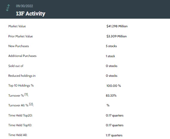 據統計,Scion 三季度持倉總市值從上一季度的 330.9 萬美元大增至 4129.8 萬美元,該機構在三季度的持倉組合中新增了 5 只個股,增持 1 只個股。