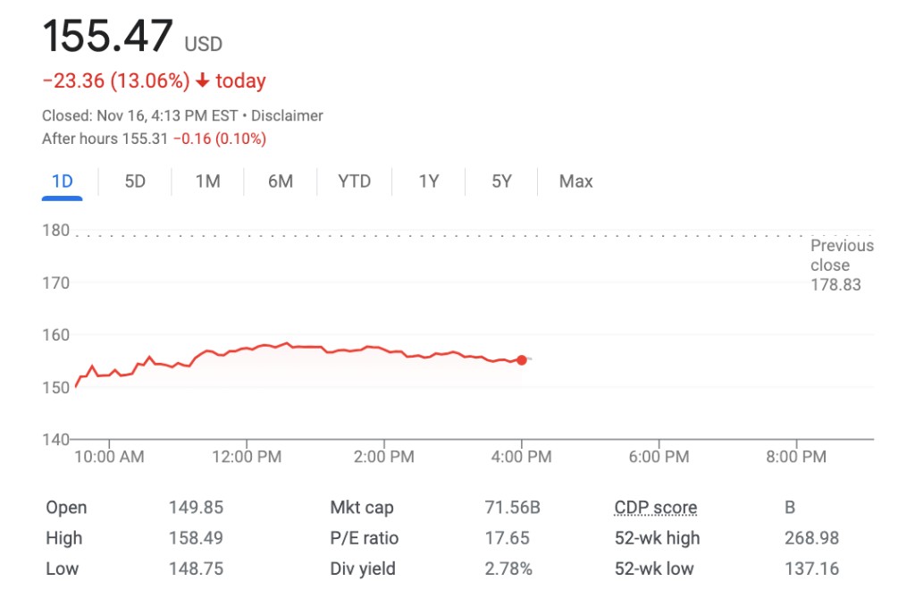 三季度調整後每股收益 1.54 美元,遠低於市場預期的 2.15 美元。