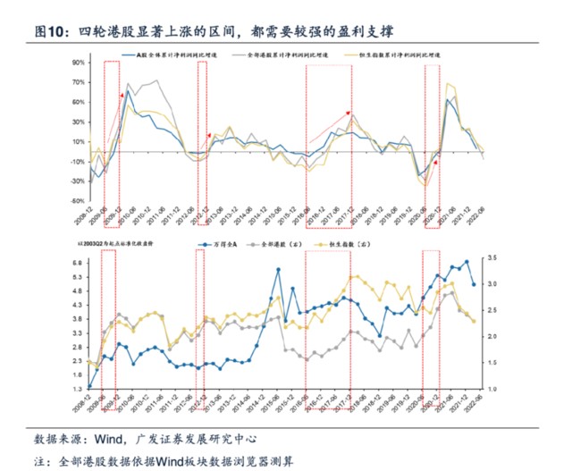 我们回顾08年以来四轮港股显著上涨的区间,都需要较强的盈利支撑。此外,我们在11.13《港股 “天亮了”—港股 “战略机遇” 系列之一》提出,相比A股,港股对于盈利的敏感性更好,往往表现出更大弹性。因此,疫情防控不断优化+稳增长政策有望更加积极的基调下,中长期我们看好国内经济和A/H盈利回升的确定性趋势,港股有望走出较好的行情。