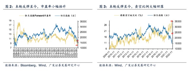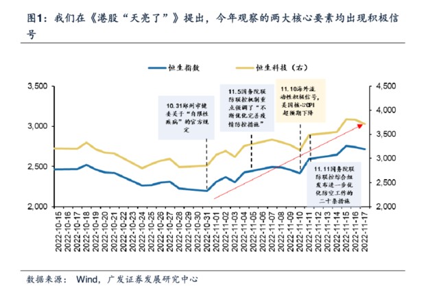 1. 一阶段行情体现在事件信号带来不确定性下降。关于疫情防控/地产调控优化预期,打响港股本轮反攻号角,低估值下空头压缩驱动反弹