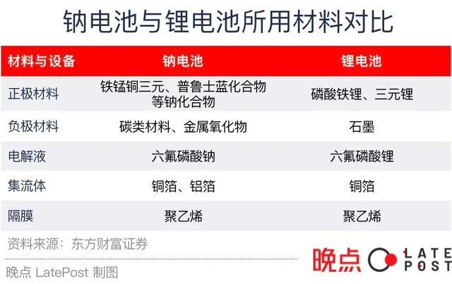 鋰電池的上游材料包括鋰化合物製成的正極材料、電解液,石墨製成的負極材料,集流體、隔膜等。集流體、膈膜具有通用性,鈉離子電池也能用鋰電池的膈膜和集流體,它也可以用更便宜的鋁箔當集流體。但鈉離子電池所用的電解液、正負極材料都與鋰電池不同,需建立新的供應鏈。