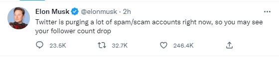 12 月 1 日,马斯克表示,推特已开始封锁虚假账户,因此用户可能会看到粉丝数量的减少。