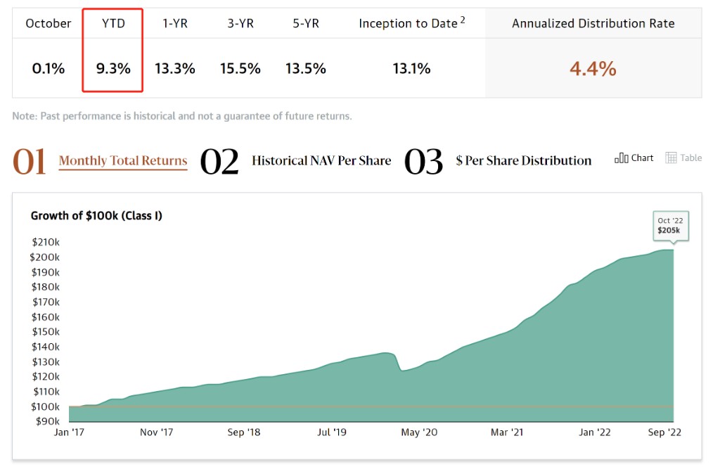 根據黑石官方的文件,BREIT 的綜合投資回報率主要由租金收入和房地產增值收入兩部分組成,成立以來的年化淨回報率為 13%,是公開交易的房地產投資信託基金的 3 倍,年初至今回報率高達 9% 以上。作為一種非交易型房地產投資信託基金,BREIT 不在交易所交易,其發行和贖回定價主要根據黑石每月發佈的資產淨值數據進行。