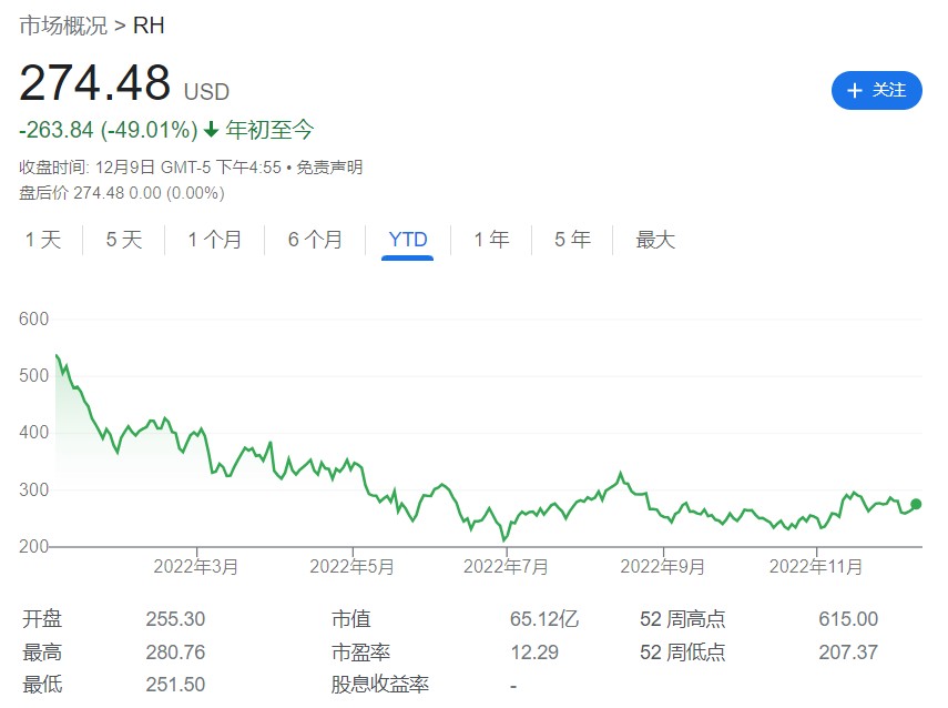 今年以來,RH 股價已經腰斬,跌幅主要集中在上半年。