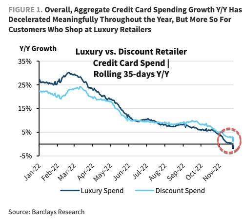 如果這種衰退是確切的,這可能意味着基礎經濟正在遭受更糟糕的影響——高收入羣體正在削減支出,低收入羣體已經耗盡了儲蓄並開始使用信用卡。