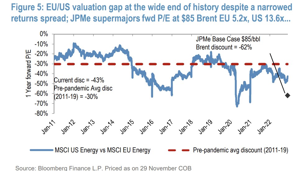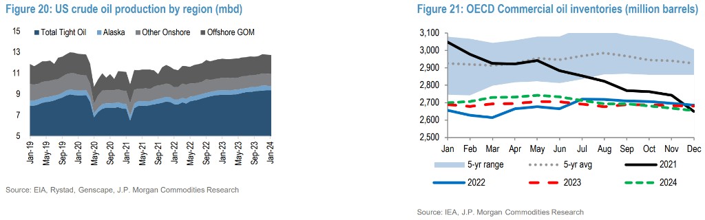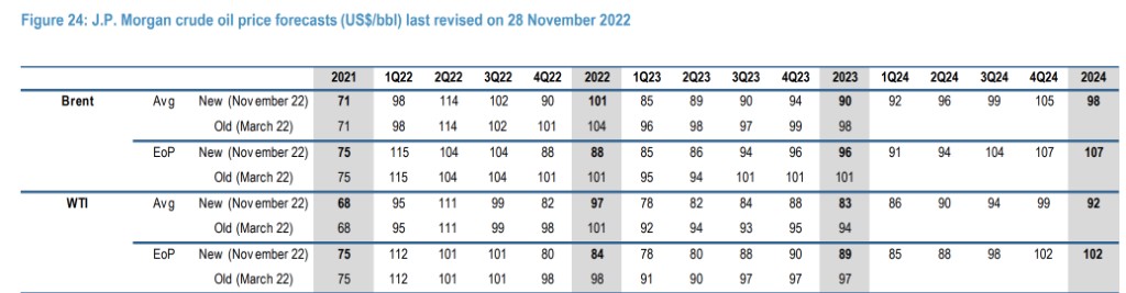 基於對供應和需求的考慮,摩根大通認為 2023 年石油的平均價格將降低 8 美元,預測 2023 年布倫特油價為 90 美元,因為俄羅斯的產量將在 2023 年中期完全恢復到正常水平,同時 OPEC+ 將在明年為保持市場平衡做出重大努力: