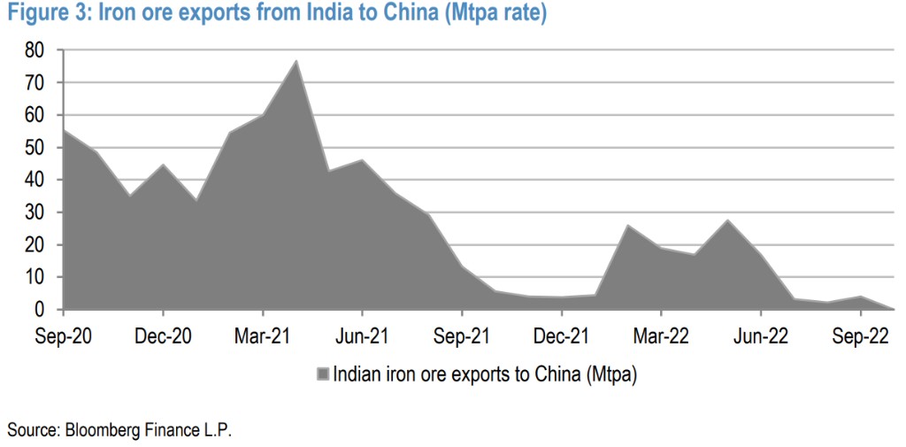 今年早些時候,高額的出口關税導致印度鐵礦石出口降至零。11 月下旬,隨着印度關税被取消,對於品位低於 58% 的鐵礦石,出口關税已經降至 0%,而之前是 50%;對於品位較高的礦石(>58%),出口關税已經從之前的 50% 降至 30%。我們認為這可能會使更多的鋼鐵重新進入出口市場。