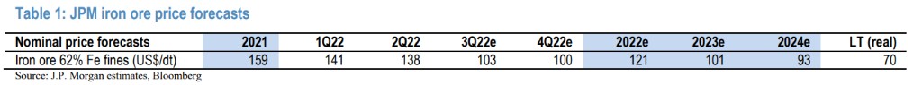 因此摩根大通認為,2023 年鋼鐵的供應將從 4.8 億噸下降到 2.5 億噸,供需基本平衡,預測 2023 年的鋼鐵價格將為 101 美元/噸,報告指出: