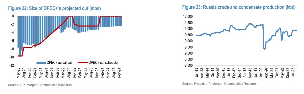 從供給短端來看, 摩根大通預計,從俄羅斯和 OPEC+ 的原油產量來看,2023 年的供應增長速度將比需求增長速度高出約 30%: