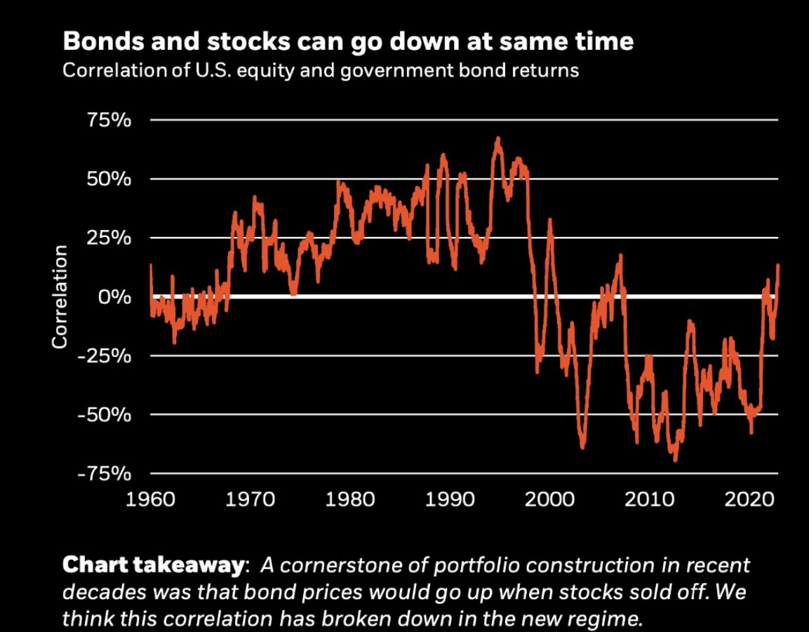 雖然貝萊德看到了一個新的股票/債券環境,但預計隨着進入 2023 年,交易員的注意力將從通脹緊張轉向衰退現實,從而導致負相關性。