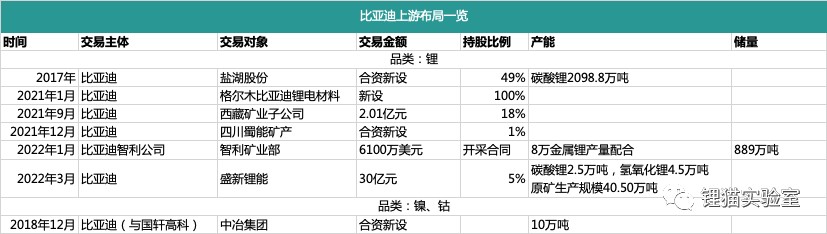 比亞迪則主要專注於鋰鹽。