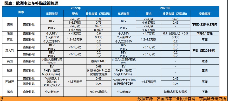 在這個背景之下,多個國家將於 2023 年起補貼下降或取消、徵收增值税等,預計歐洲的銷量將迎來大幅提升的增速。