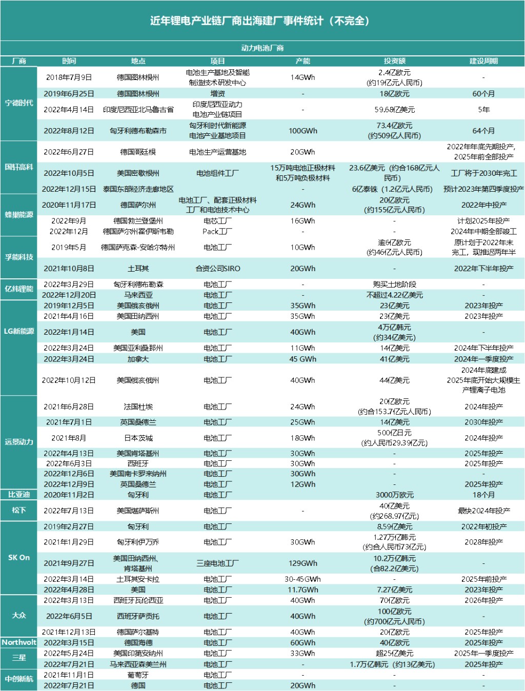 除了國內擴產之外,中國的新能源汽車以及動力電池卷向海外也是趨勢之一。