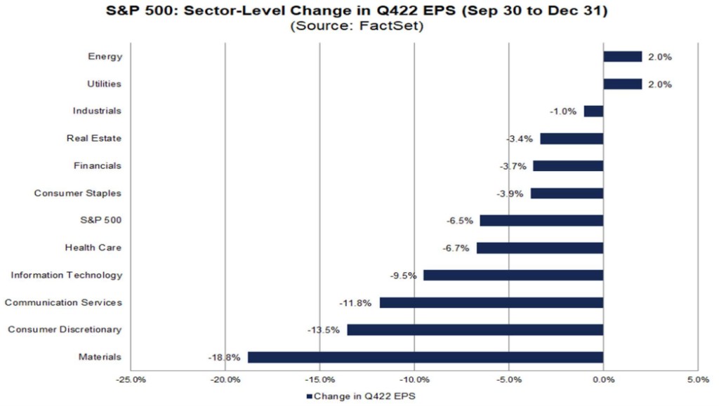 對於 2022 年第四季度,65 家標普 500 公司發佈了負面的每股收益指引,而發佈正面每股收益指引的公司僅有 35 家。
