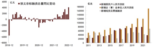 圖表 2:非標融資增量變動(左);2022 全年信貸分項增量(右)