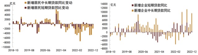 12 月新增貸款 1.4 萬億元,同比多增 2665 億元,好於市場平均預期,信貸投放保持一定增長;12 月疫情衝擊下居民消費不足,加上商品房銷售仍低迷,居民貸款增長較為乏力;疫情背景下企業融資需求也較弱,不過政策推動信貸投放,企業中長期貸款增長較快。