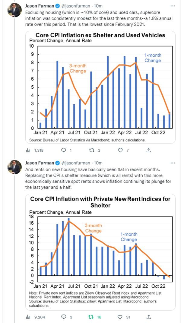 通脹數據公佈後,奧巴馬政府時期的經濟顧問 Jason Furman 連發數條推文表示,美國經濟 “軟着陸” 的趨勢十分明顯,即使它來得沒有我們預期的那樣快。