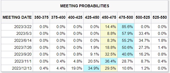 美聯儲在北京時間週四宣佈連續八次加息,鮑威爾表示未來還會有少數幾次加息——市場對此解讀為:鮑威爾暗示加息週期接近尾聲,但是包括鮑威爾在內的多數美聯儲官員預計今年不會出現市場期待的降息。然而,美國的通貨膨脹依然居高不下,經濟增長正在放緩,該國一些大型公司的招聘正在降温。