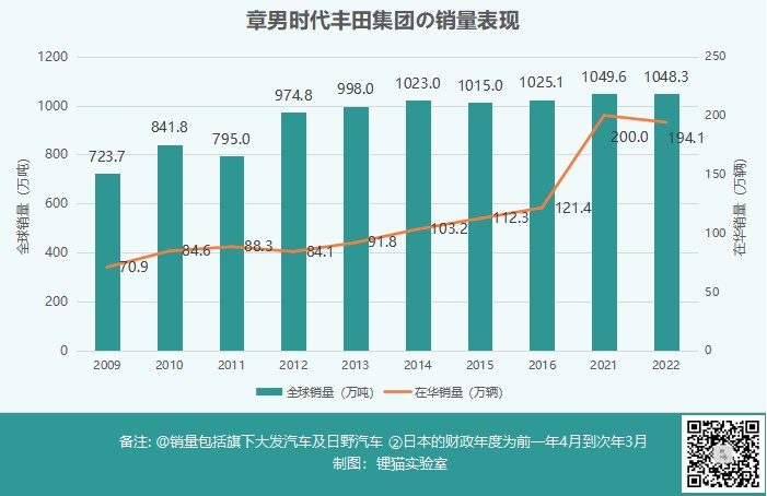 而這個曾經在豐田章男上任時挽救了豐田汽車的中國市場,如今也出現了十年來的首次下跌:2022 年豐田汽車在中國實現 194.06 萬台銷量,同比減少 0.2%。