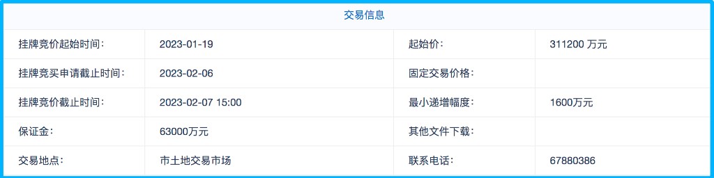 根據北京市規劃和自然資源委員會公示的信息,北京越新房地產開發有限公司於 2 月 7 日以 31.12 億元競得北京亦莊一塊 71668 平方米的土地。