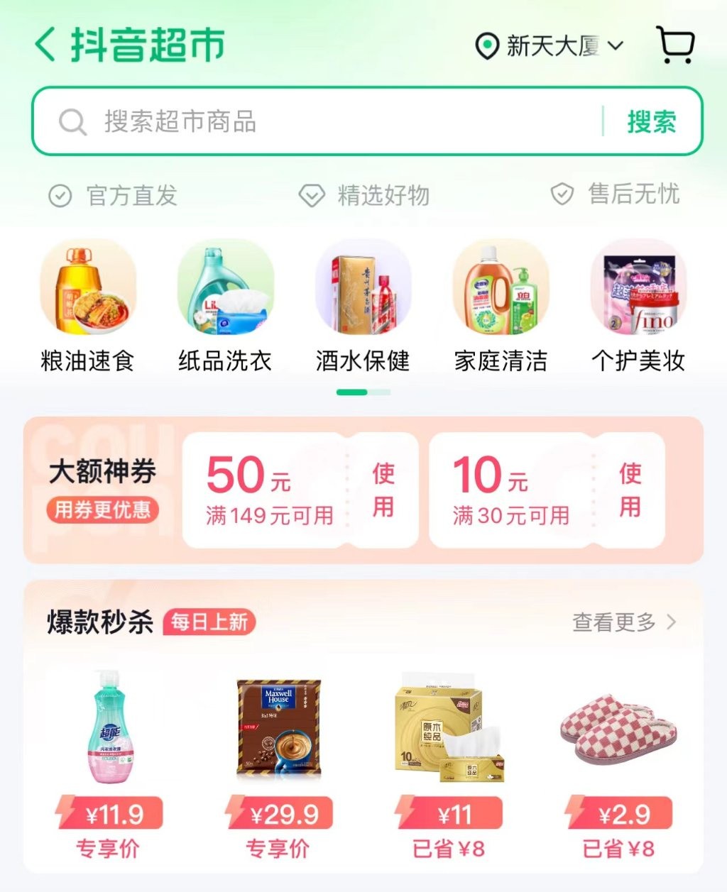 這兩年字節跳動帶給我們驚喜連連,以短視頻社交軟件發家的抖音發展路徑似乎超過了大部分人的想象。首先是在電商領域大刀闊斧般地推進,繼去年 “商城” 放入一級入口明確貨架電商戰略地位,今年春節 “抖音超市” 也正式上線了。