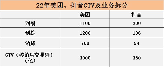 從圖中數據可以看出,抖音在業務上還是以到餐為主(佔比超過 50%),但從盈利能力看,到餐的 take rate 明顯是要低於到綜及酒旅(美團 21 年到綜貢獻了約業務一半的收入)。