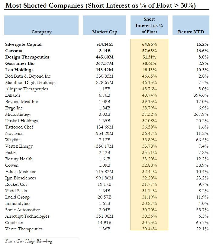 兩週前,金融博客 ZH 發佈了一份 “被最多做空” 名單。該名單顯示,加密貨幣銀行 Silvergate Capital 空頭權益佔流通量的百分比高達 64.86%,排名第一。藉此機會,一大批機構長驅直入,抄底 Silvergate Capital,但索羅斯缺席了。