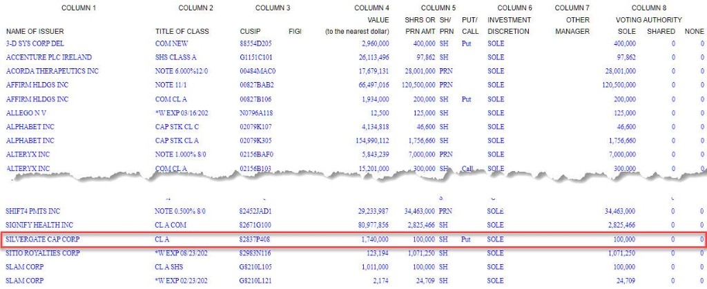 做多 Silvergate Capital 的機構名單還很長,包括 2022 年表現最好的安信基金、科技投資者 Bill Miller 等等……