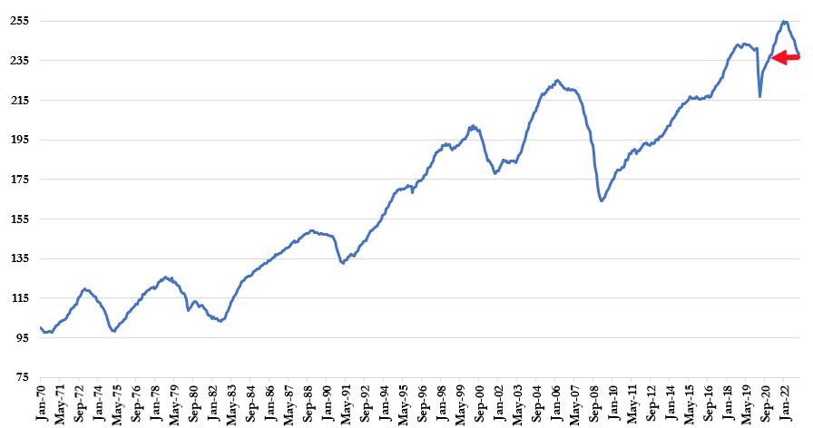 這是 LEI 連續第 10 個月下降(也是過去 13 個月中的第 11 個月下降),這創下了自 “雷曼兄弟” 事件以來最長的連續下降時長。