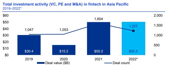 畢馬威:2022 年亞太區金融科技投資 505 億美元 創歷史新高